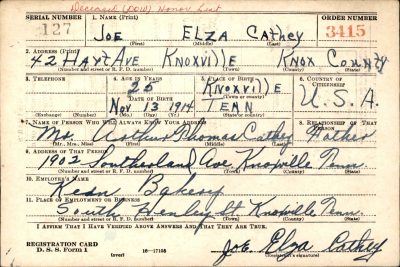 Joe Elza Cathey was born in Knoxville, Tennessee, the son of Arthur Thomas Cathey.
