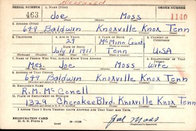 - Burial/Memorial Location: Knoxville, Knox County, TN