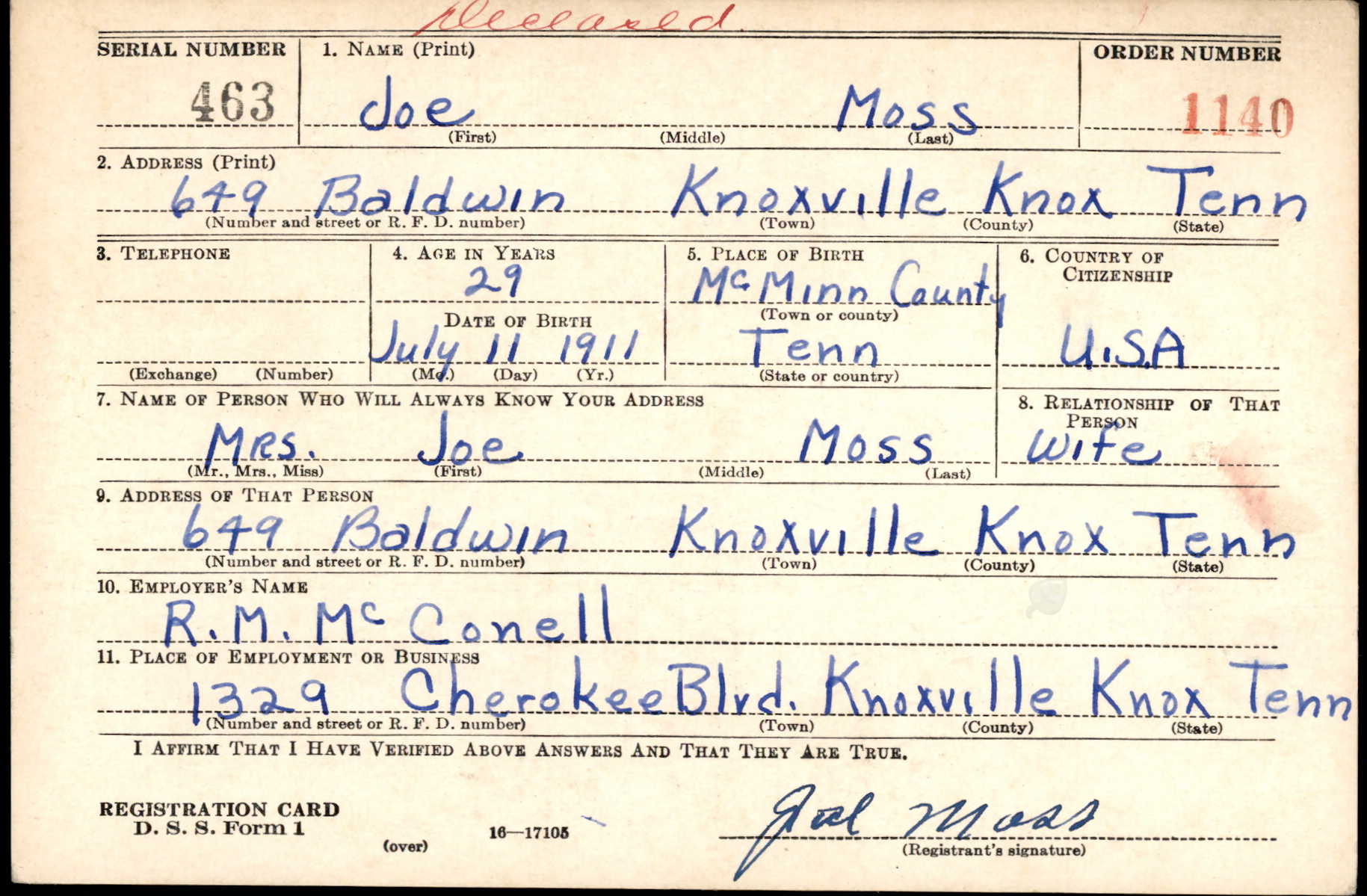 Joe Moss was born in, the son of Albert Moss. He was maried to Henrietta Sanders Moss
