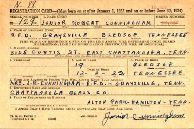 Joe Robert Cunningham Jr. was the son of Joseph Robert Cunningham and Hester Mae Hughes.