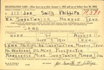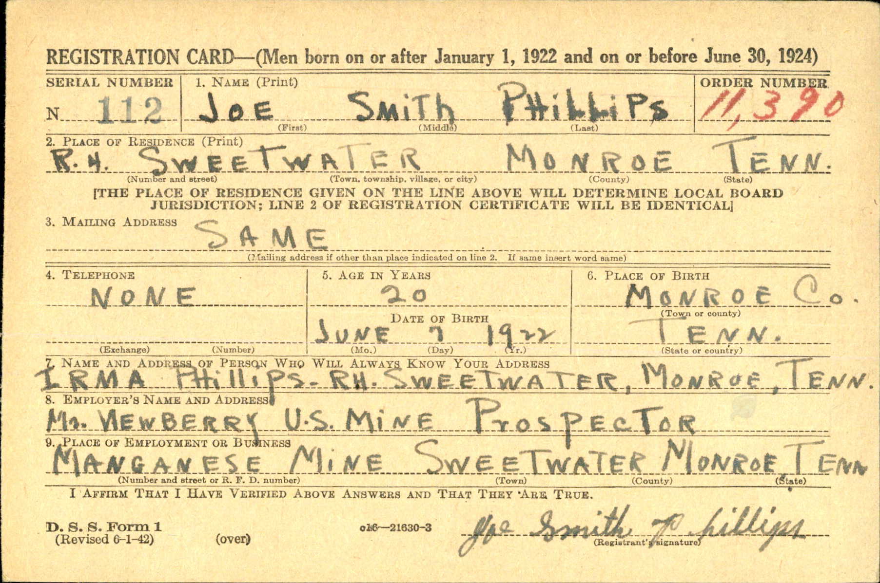 Joe Smith Phillips was the son of David Alexander Phillips and Irma Beatrice Foulks.