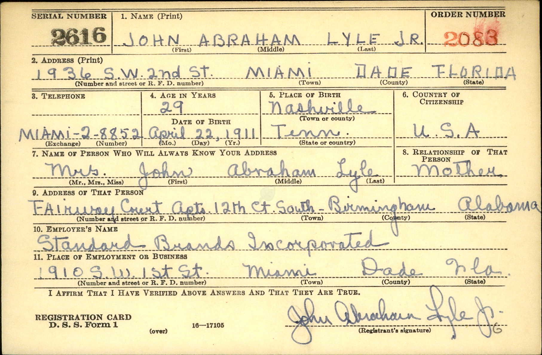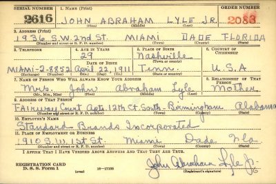 John Abraham (Jack) Lyle was born in 1911 in Knoxville to John Abraham Lyle and Effie Kirk Napier. He married Elizabeth Frances McKee on December 30, 1936. He was the brother of Florence Napier Lyle and Jane Kirk Lyle.