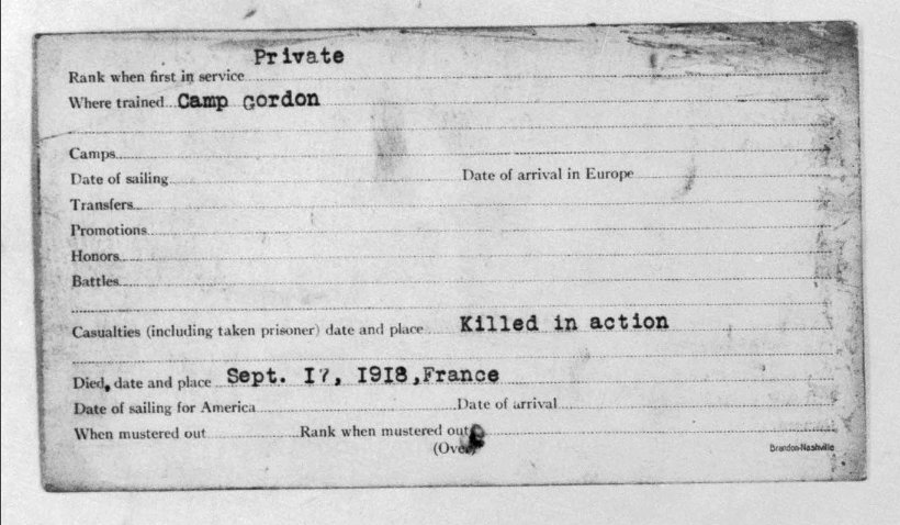 - Burial/Memorial Location: Somme American Cemetery, Bony, France