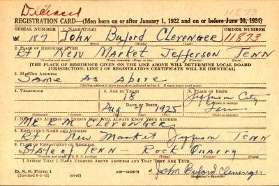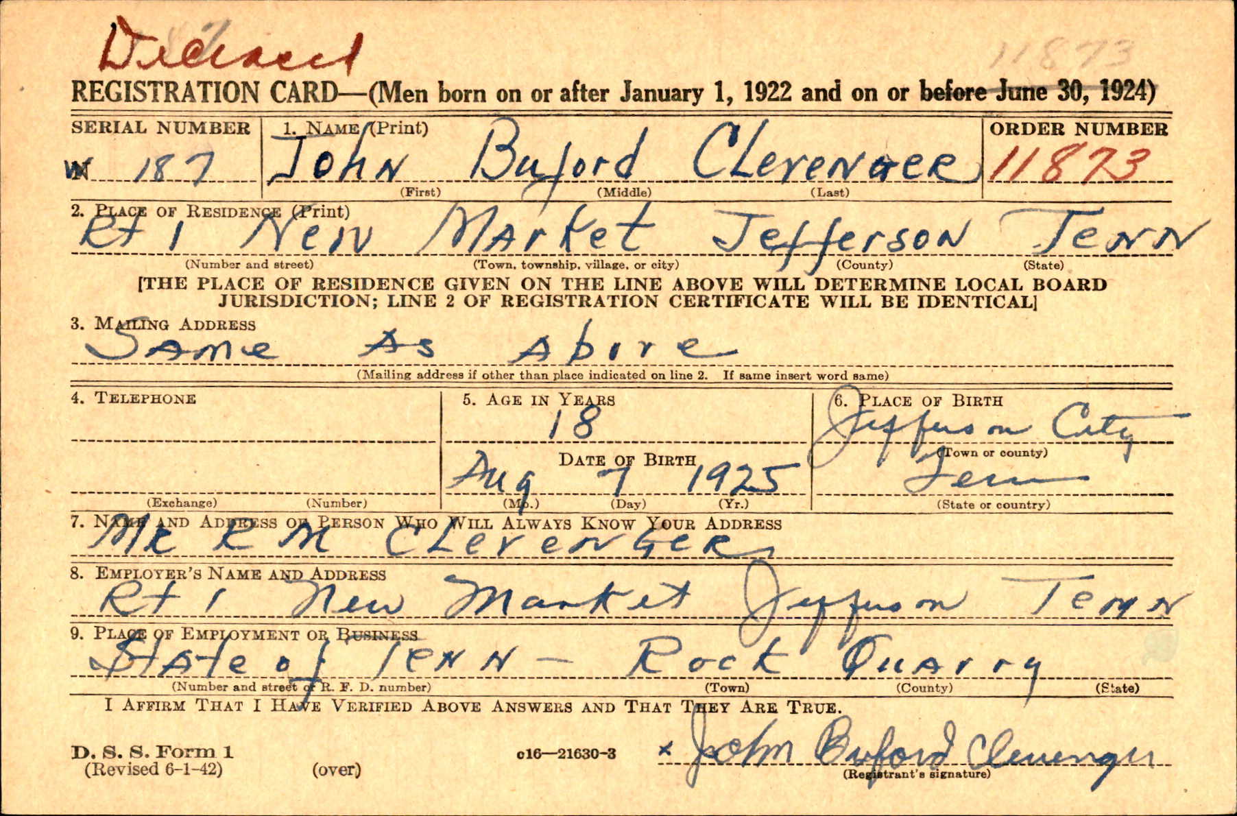 John Buford Clevenger was the son of Roy Martin Clevenger and Lillie Lee Pendergrass.