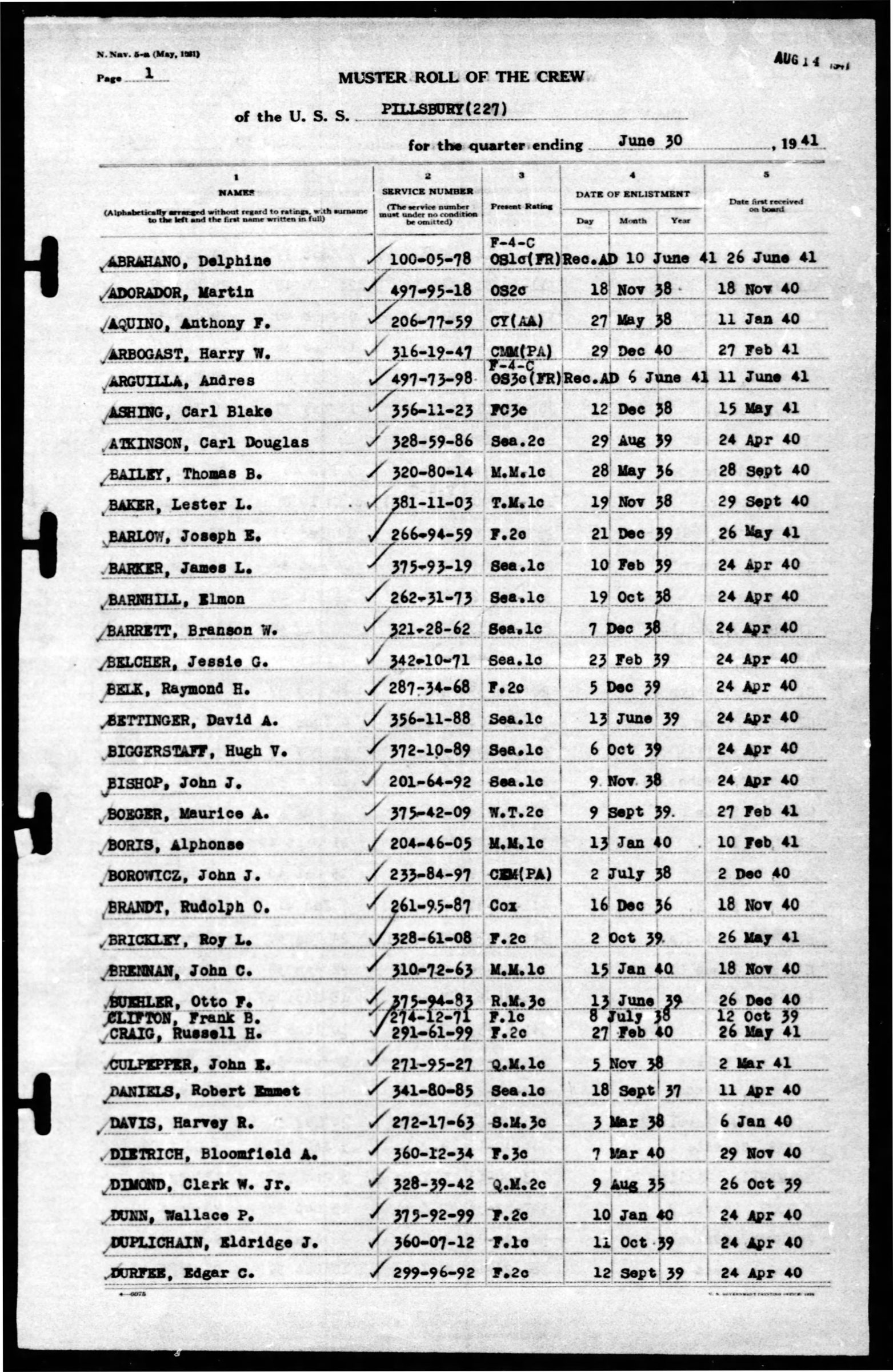 - Division/Assignment: U.S.S. Pillsbury (227)