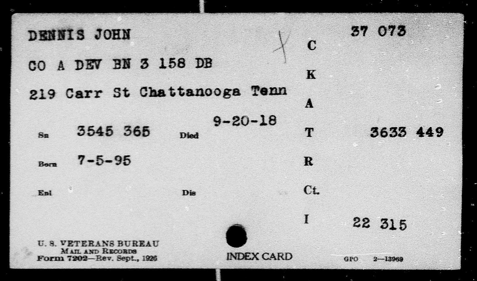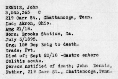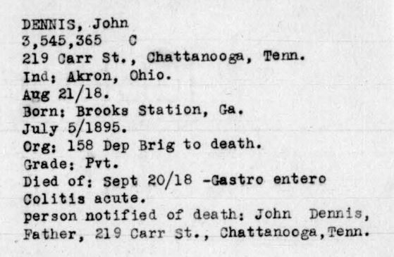 John Dennis was born in 1895 at Brooks Station, Georgia, son of John Dennis.