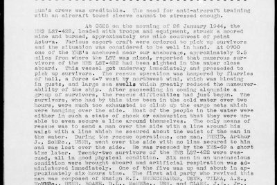The explosions dislodged vehicles that were secured on the decks and littered the top with debris pinning soldiers. A troop compartment door was jammed and trapped many men as the ship sank. Those that attempted escape succumbed to hypothermia in the frigid water even though LST 301 and other vessels promptly responded to the emergency.