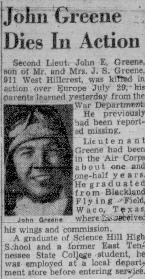Co-Pilot, 2Lt Greene, John Etheridge, Johnson City, TN