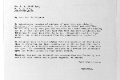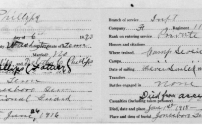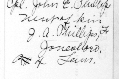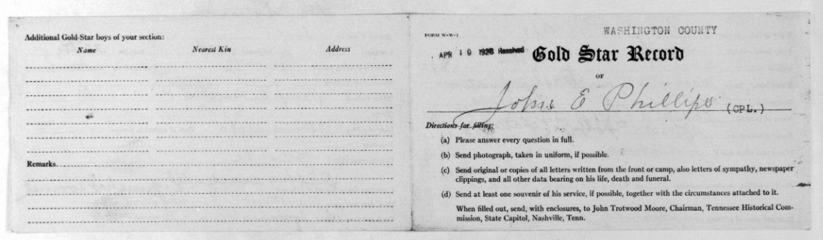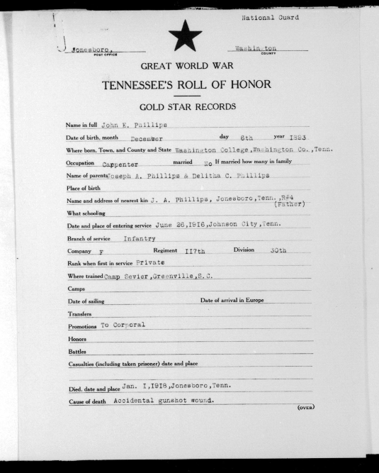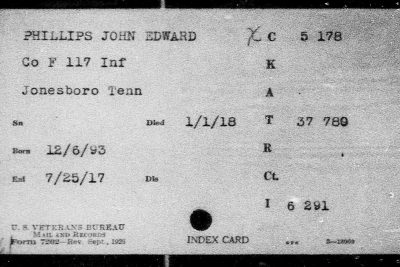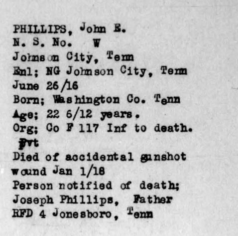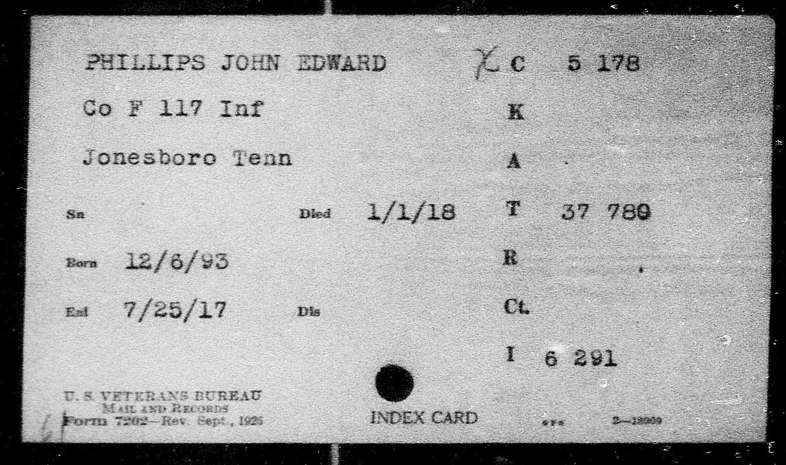 John Edmund Phillips was born 6 December 1893, Washington County, Tennessee, son of Joseph Alexander Phillips and Talitha Cumi Denton.