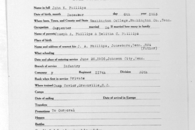 - Division/Assignment: Company F, 117th Infantry Regiment, 30th Infantry Division