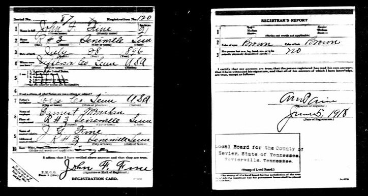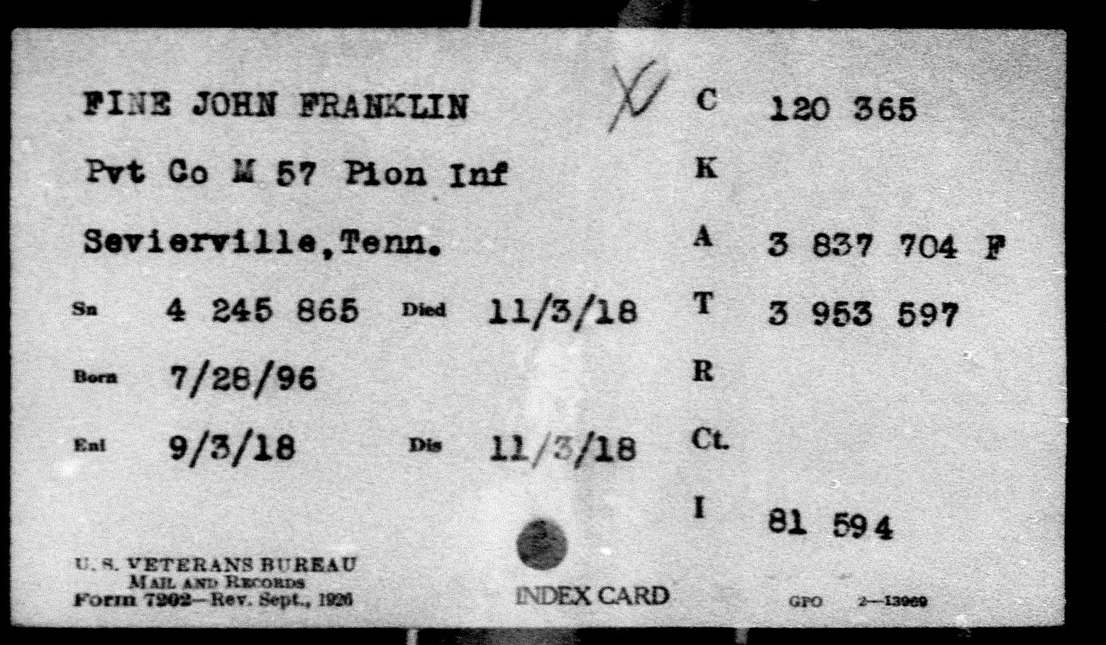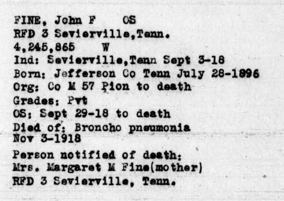 Private John F. Fine was born 28 July 1896, Jefferson County, Tennessee