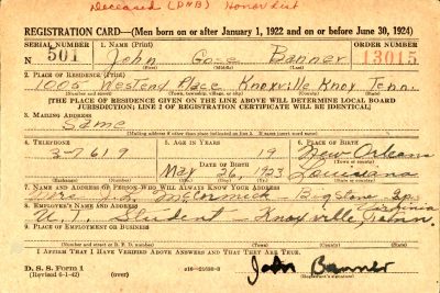 John Gose “Jack” Banner was born 1924, Louisiana to John Gose Banner and Madge Titcomb Dingess.