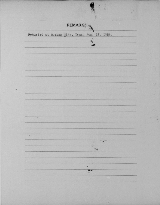 - Burial/Memorial Location: Spring City Cemetery, Spring City, Rhea County, TN