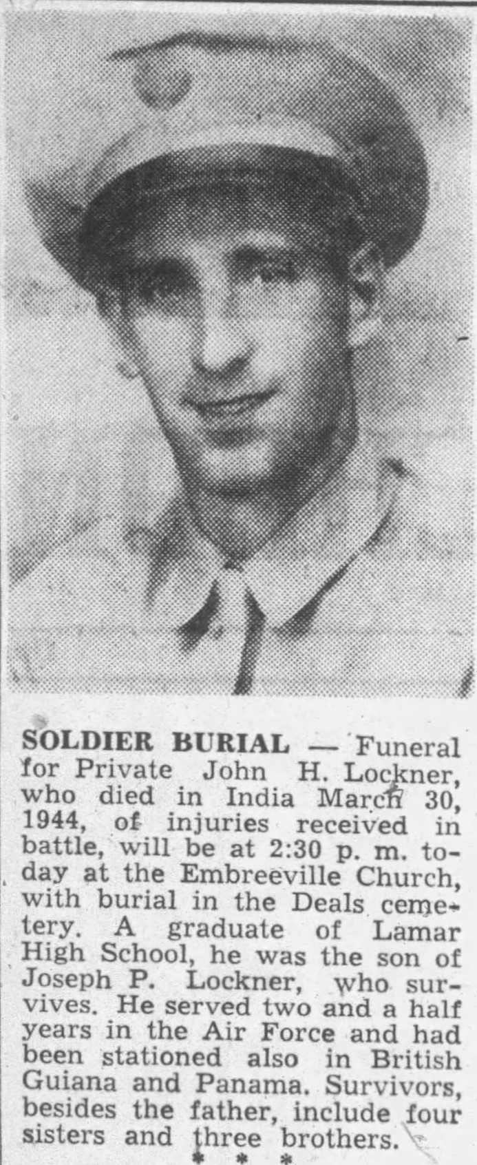 John Howard Lockner was born on 13 February 1913 in Embreeville, TN, the son of Joseph Philip Lockner and Mary Tucker.