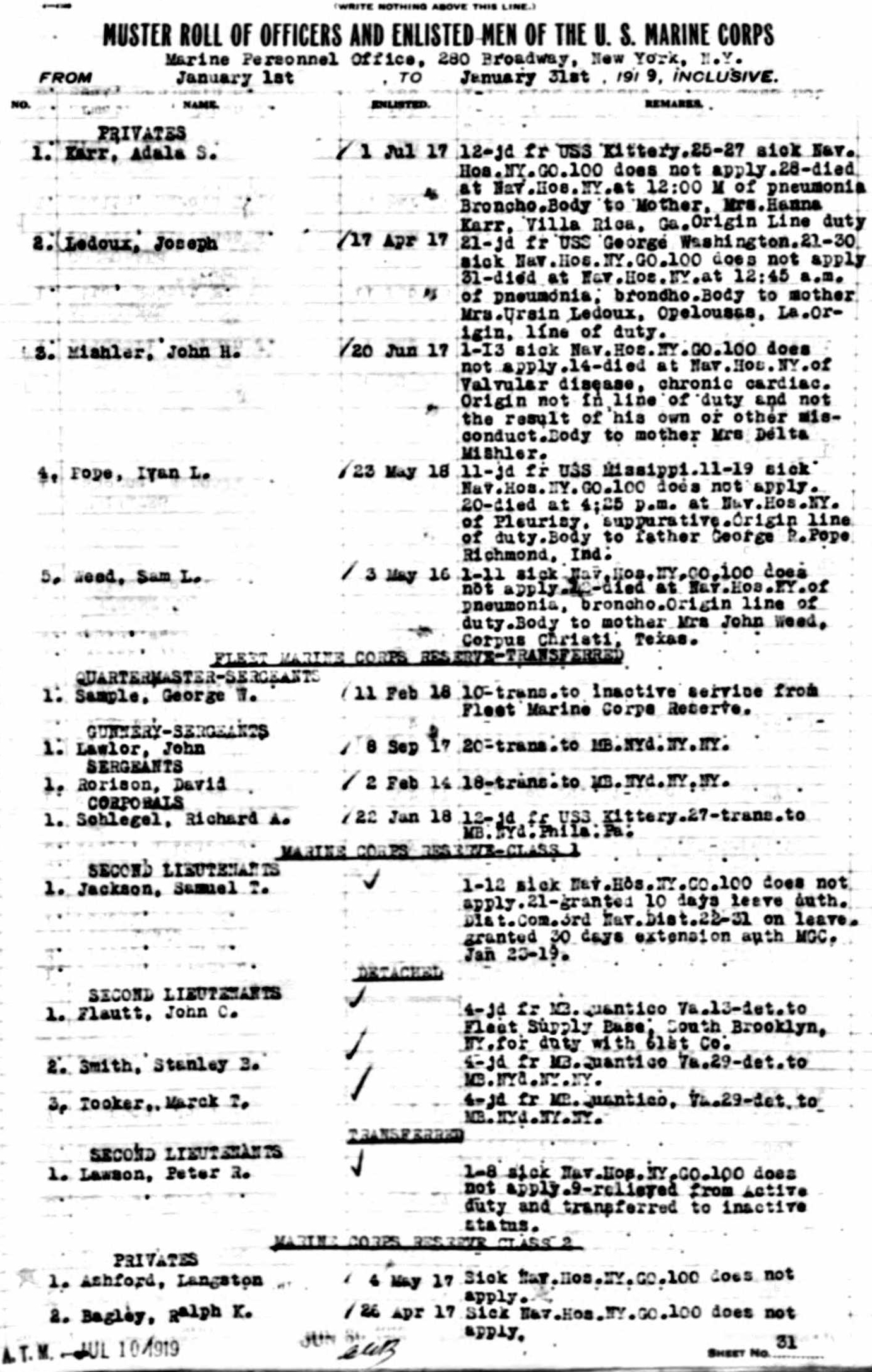 - Division/Assignment: Medical Corps Nav Amm Depot USMC