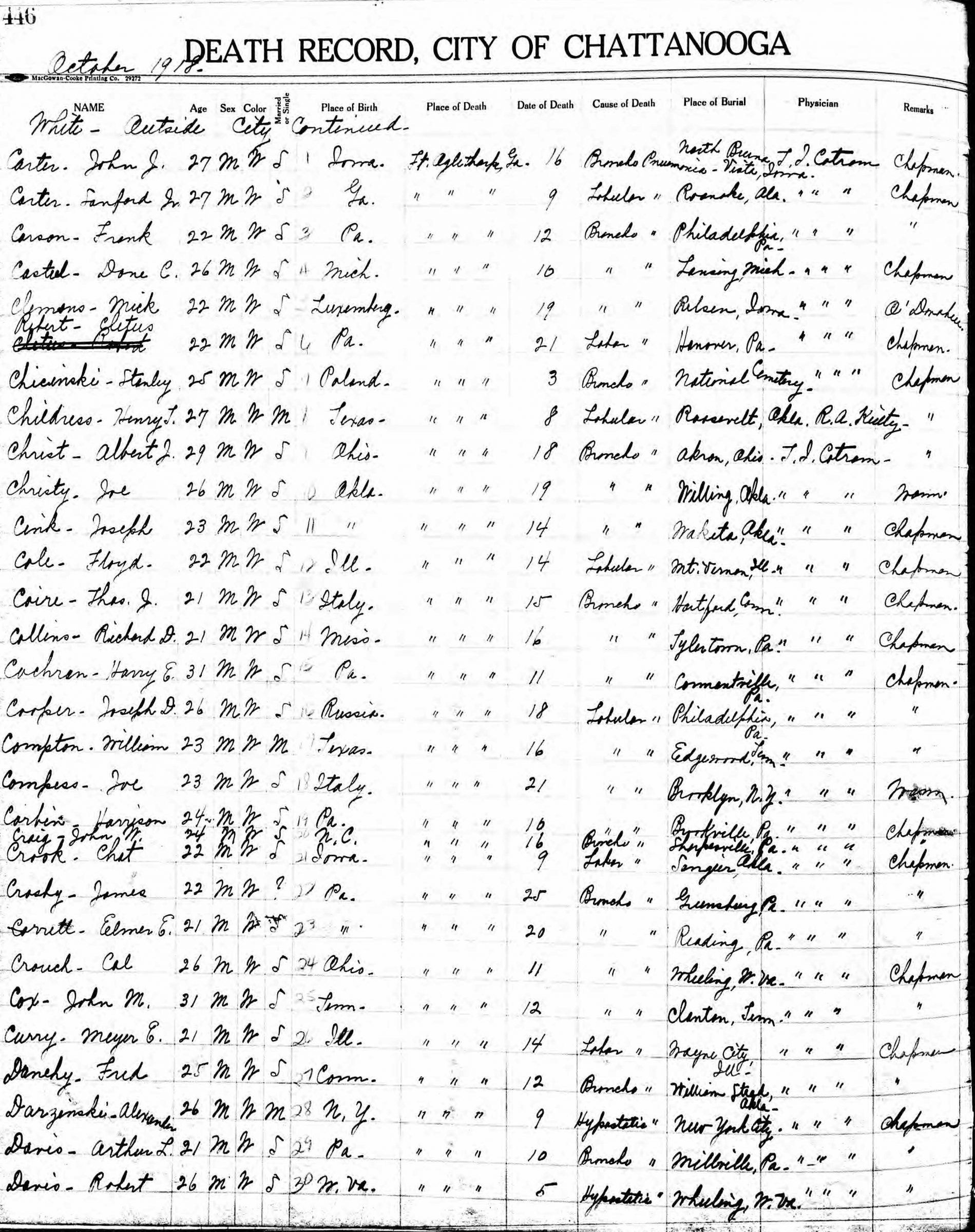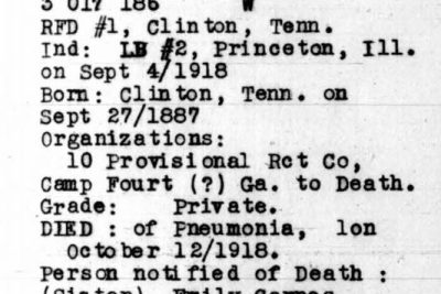 Pvt Cox died at Fort Oglethorpe, Georgia of Broncho Pneumonia.