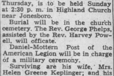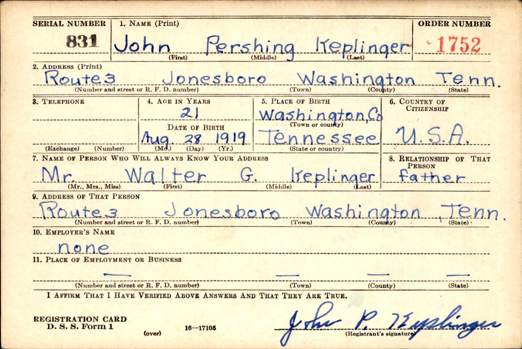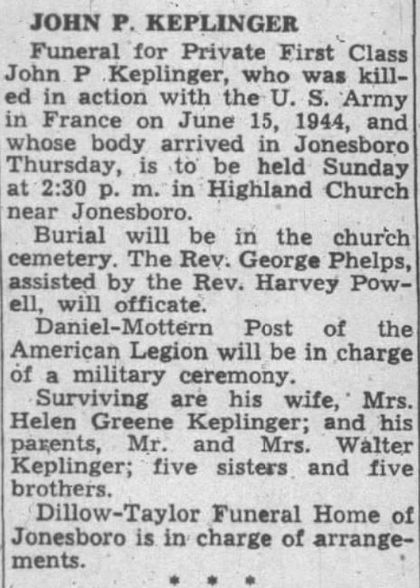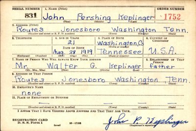Private First Class John Pershing Keplinger, Service Number 34192748