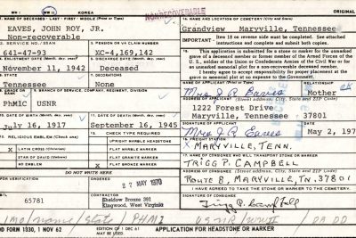 - Burial/Memorial Location: Honolulu Memorial, Honolulu, Hawaii