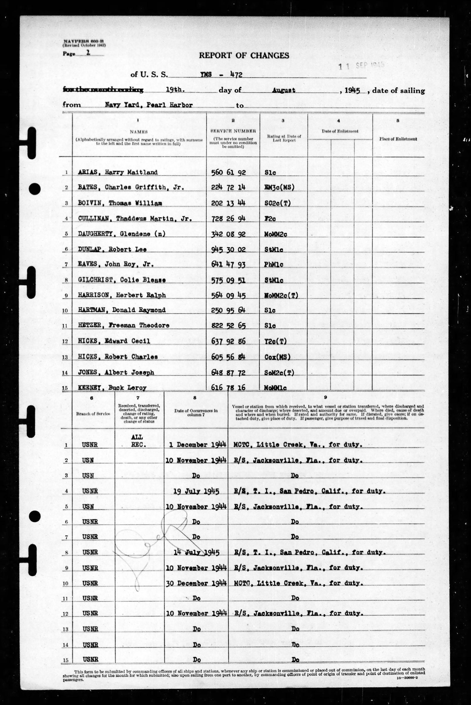 He served on the U.S.S. YMS – 472. He is memorialized at Honolulu. He died on 16 September 1945.
