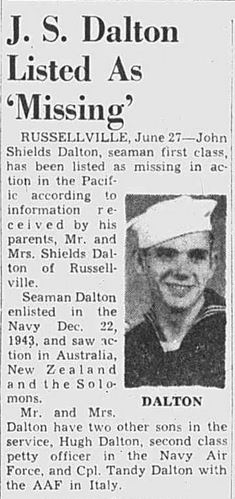 He is remembered on the Tablets of the Missing, Honolulu Memorial Cemetery, Hawaii.