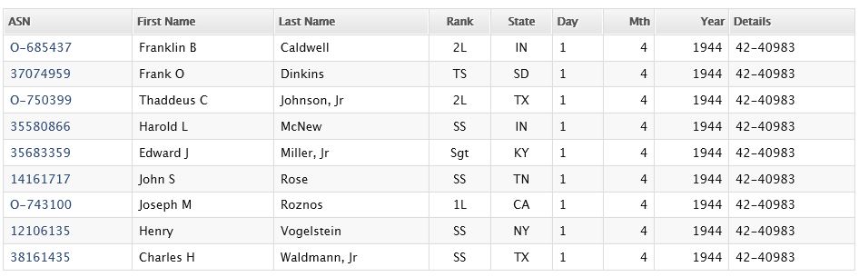 - Service Branch: Army/Army Air Forces