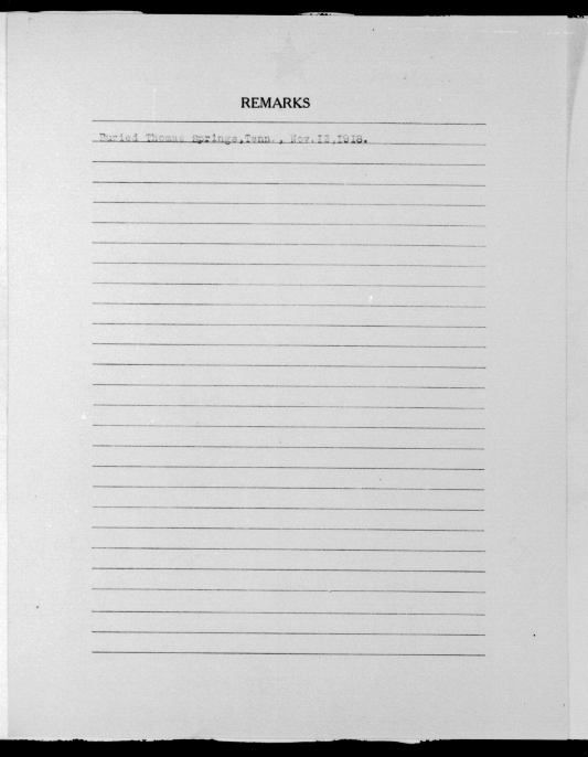 - Burial/Memorial Location: Thomas Springs Cemetery, Cumberland County, TN