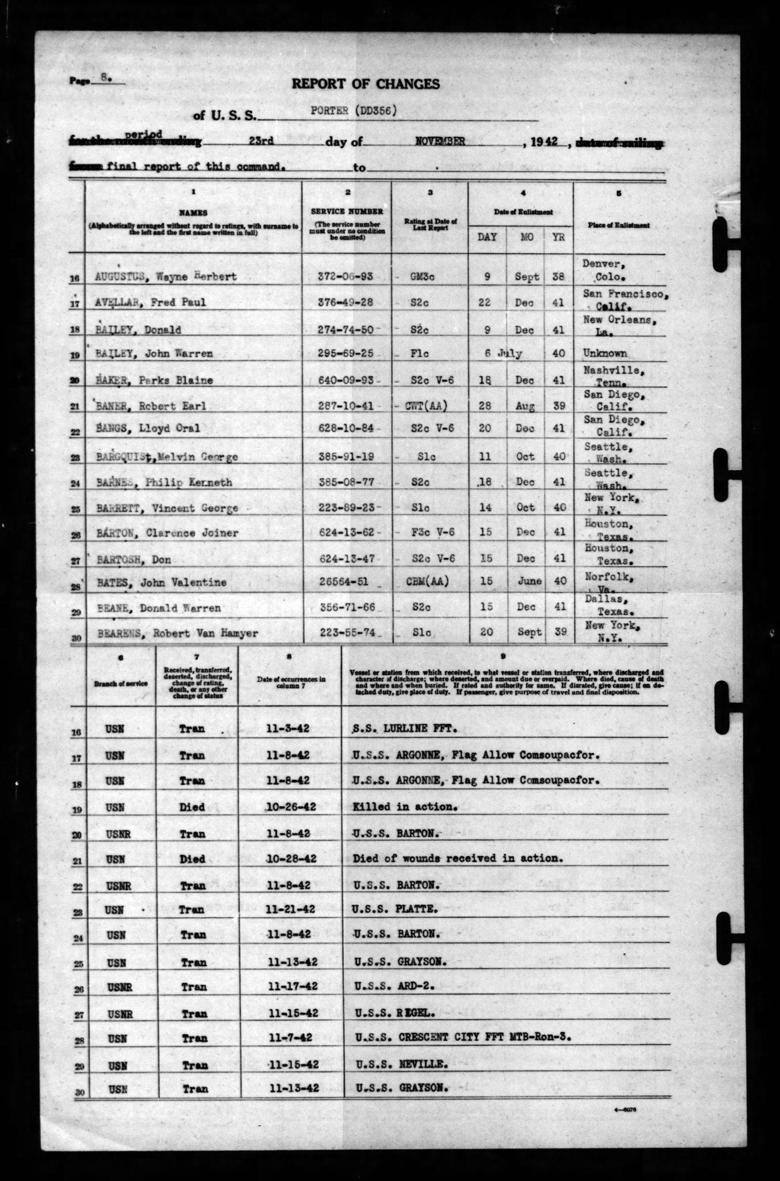 - Division/Assignment: USS Porter (DD356)