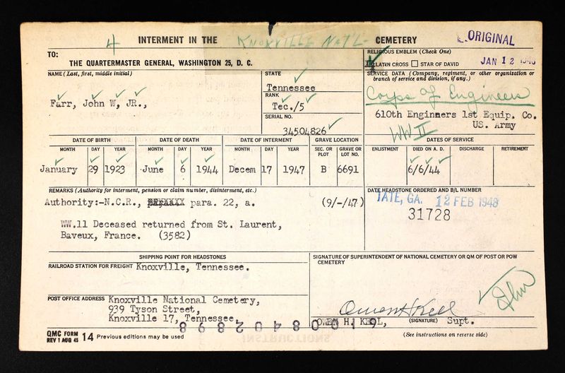 - Burial/Memorial Location: Knoxville National Cemetery, Knoxville, TN