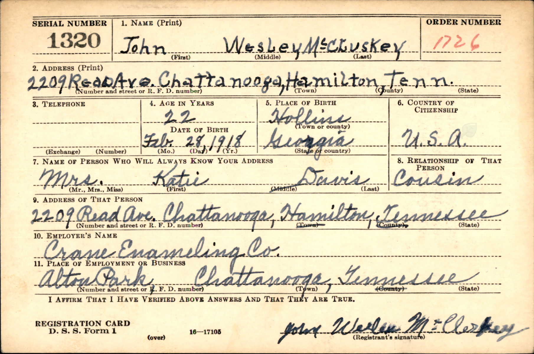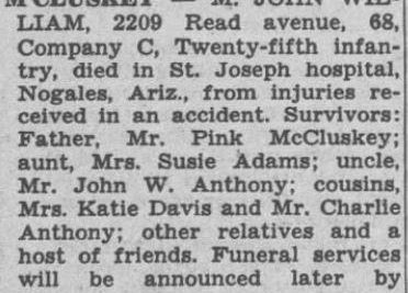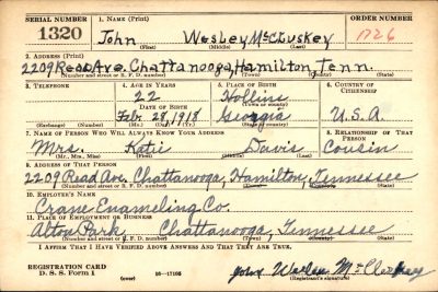 John Wesley McCluskey was born at Hollins in Georgia, the son of Pink and Daisy McCluskey.