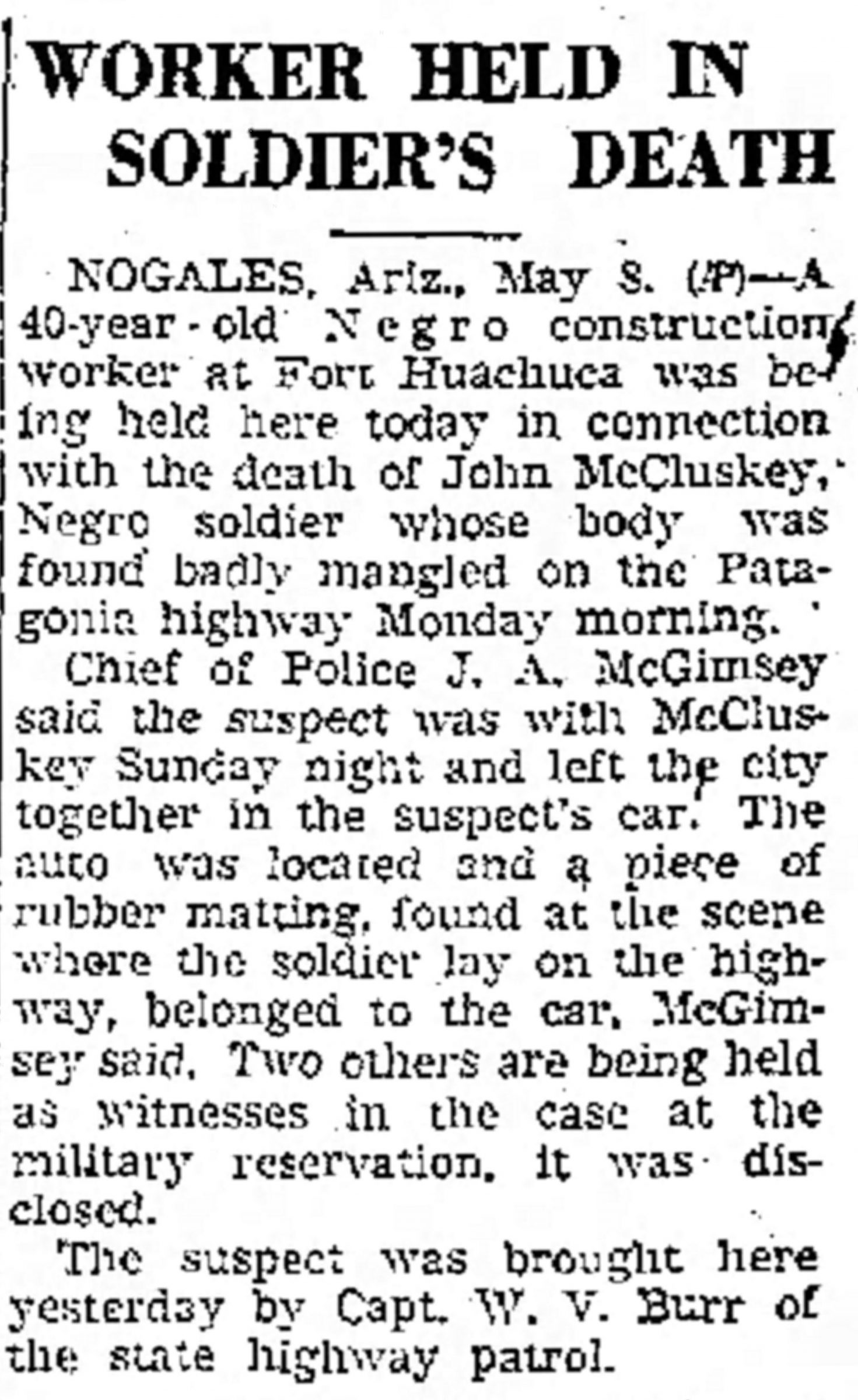 He Died non Battle 5 May 1942 in the Sint Joseph hospital at Nogales, Arizona from injuries received in an accident.