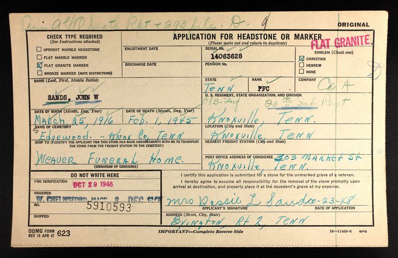 - Burial/Memorial Location: Edgewood Cemetery, Knoxville, Knox County, TN