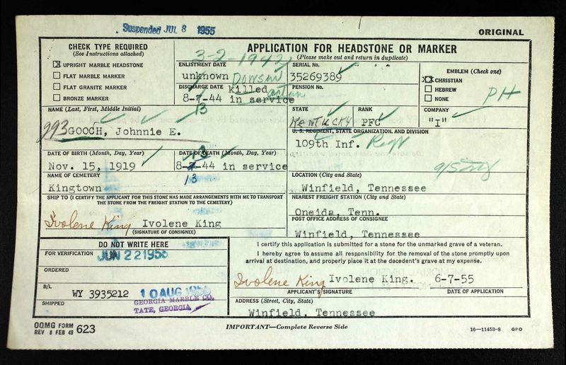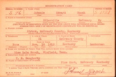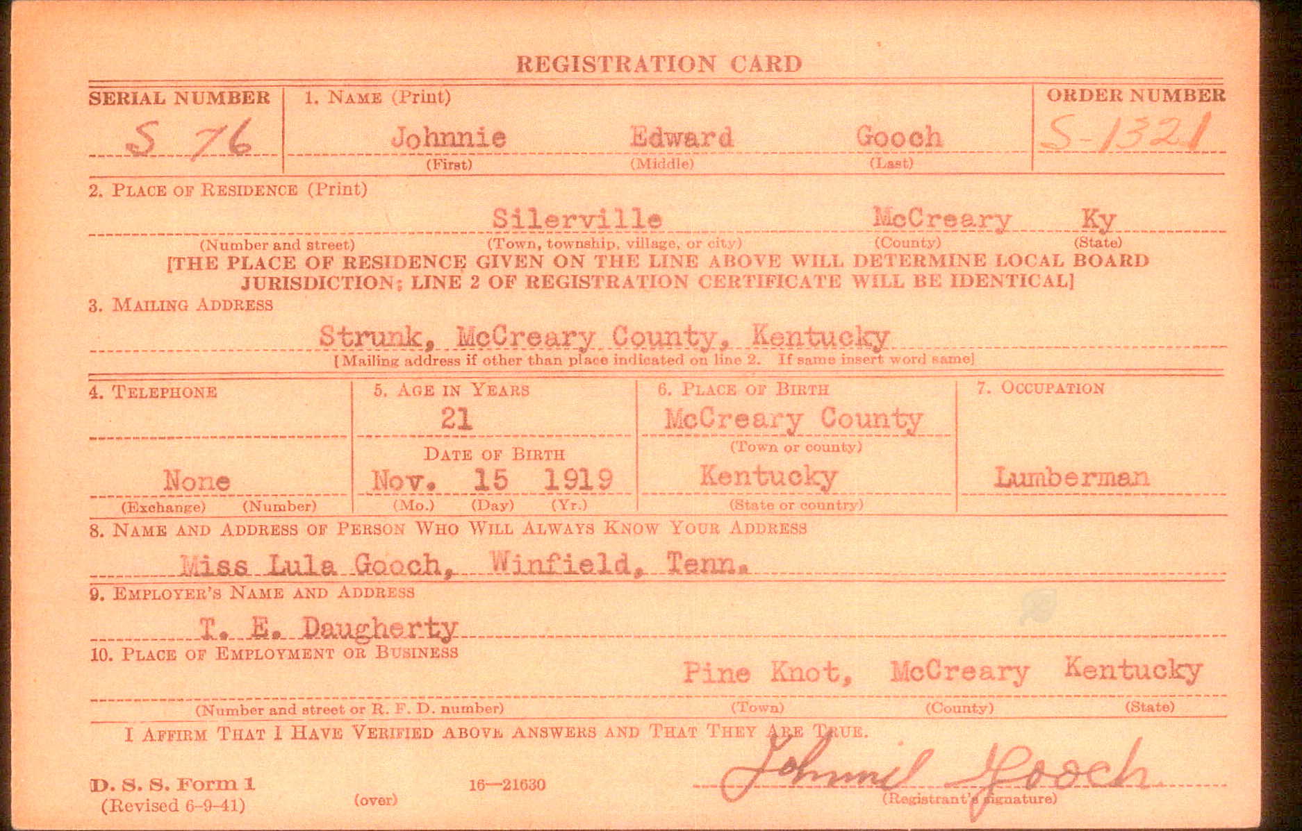 Johnnie Edward Gooch was born on 15 November 1919, the son of George Matison Gooch and Lusetta Strunk. He was married to Monia “Monnie” King.