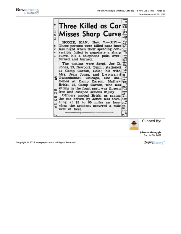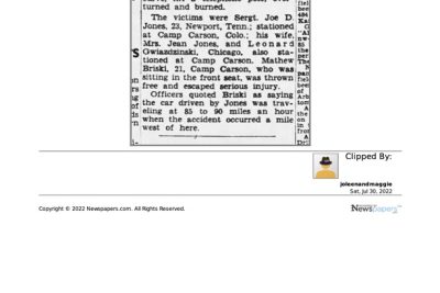 Jones, who is a holder of the Bronze Star for his action overseas, plus several other important medals and citations, died with his wife and another soldier. He only recently spent a furlough in Newport with relatives and friends, immediately after returning to the United States from Korea.