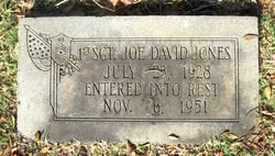 First Sergeant Joe David Jones was born July 23, 1928 to William Joe Jones and Francis Louella Moore and died non-battle November 6, 1953.