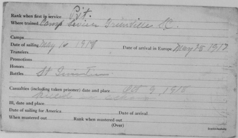 - Burial/Memorial Location: Somme American Cemetery, Bony, France