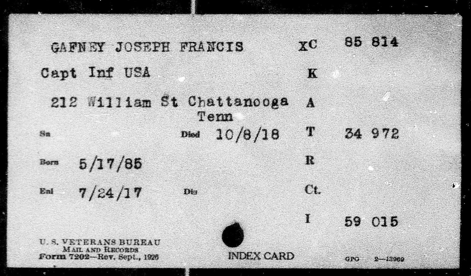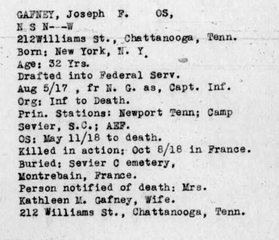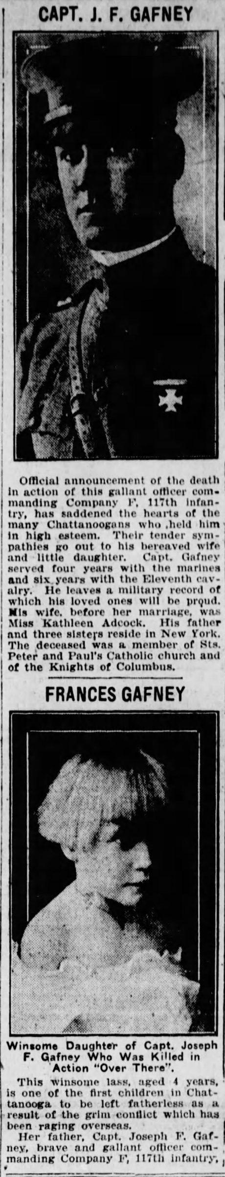 He was killed in action in the drive of the 30th division between Cambrai and St. Quentin. Captain Gafney served four years with the marines and six years with the Eleventh Cavalry.