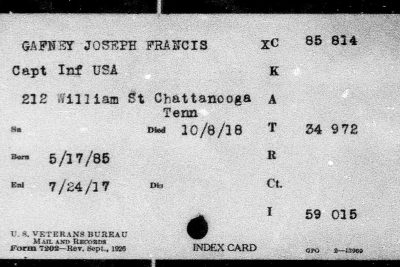 He died at the age of 30, and is buried in plot B, row 17, grave 12, Somme American Cemetery and Memorial, Somme, Picardie Region, France.