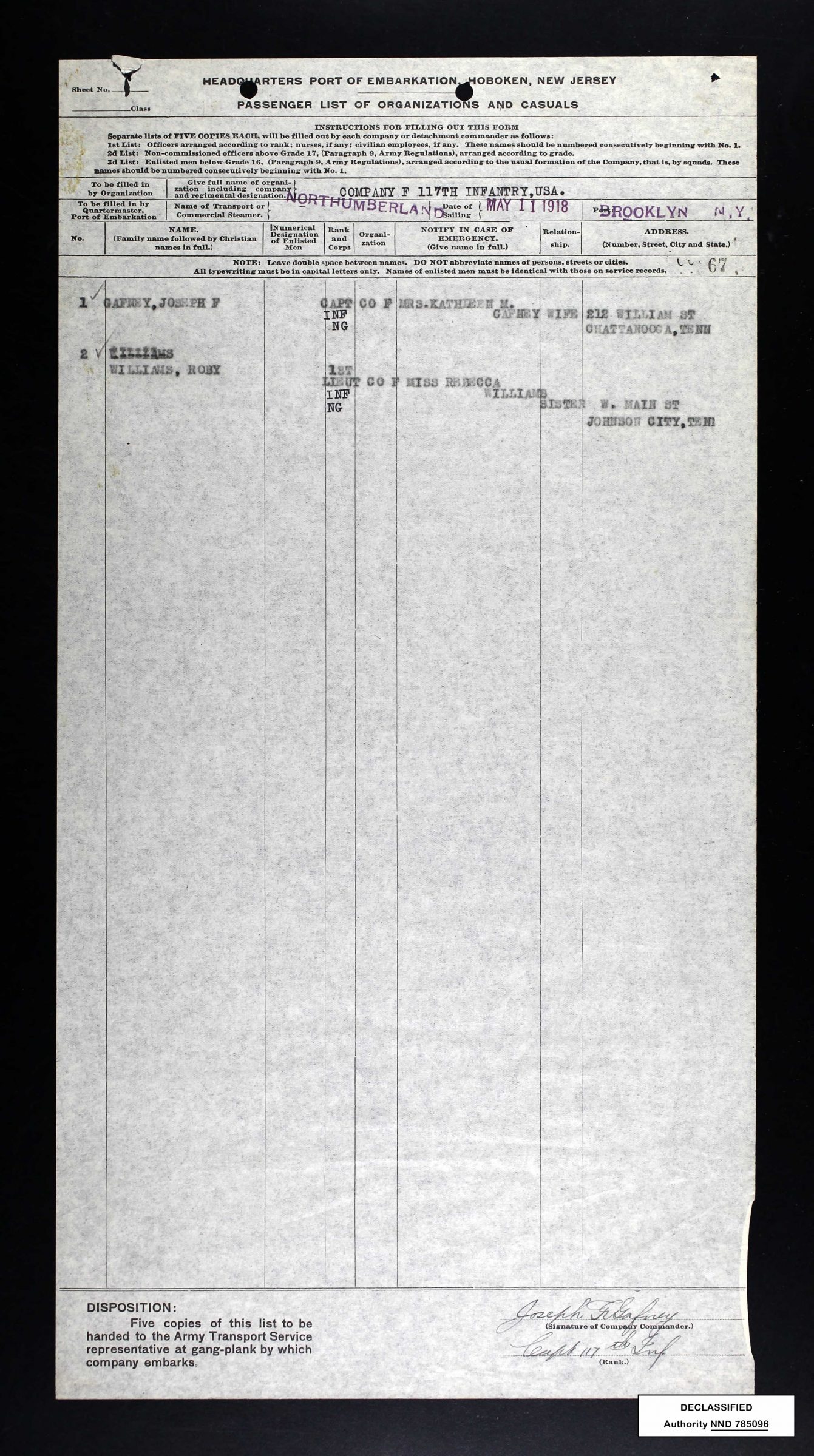 - Division/Assignment: 117th Infantry Regiment, 30th Infantry Division