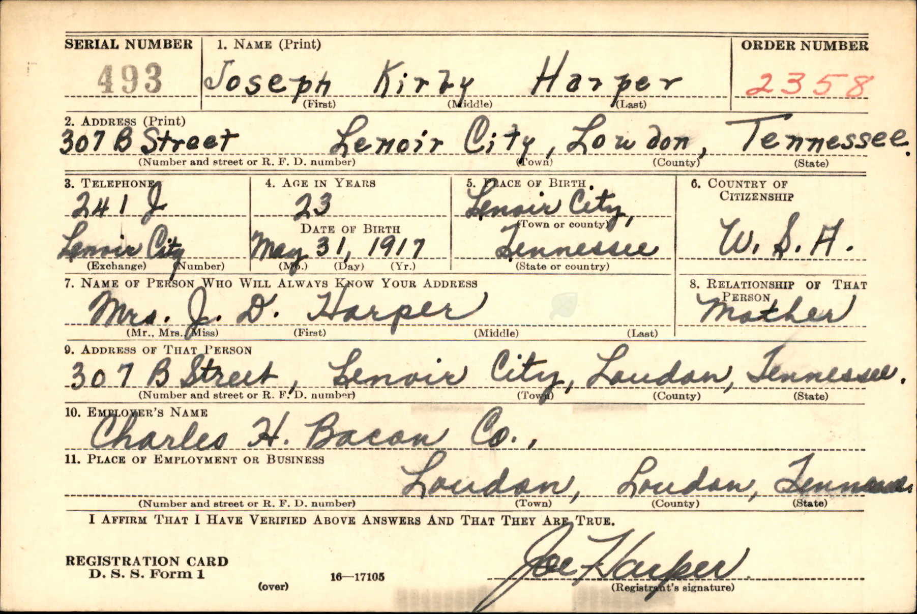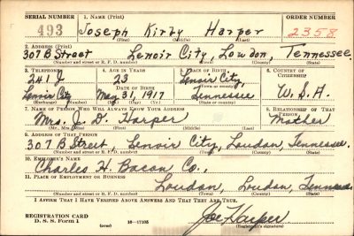 Parents: Mr. and Mrs. John Douglas Harper, 307 B Street, Lenoir City, TN