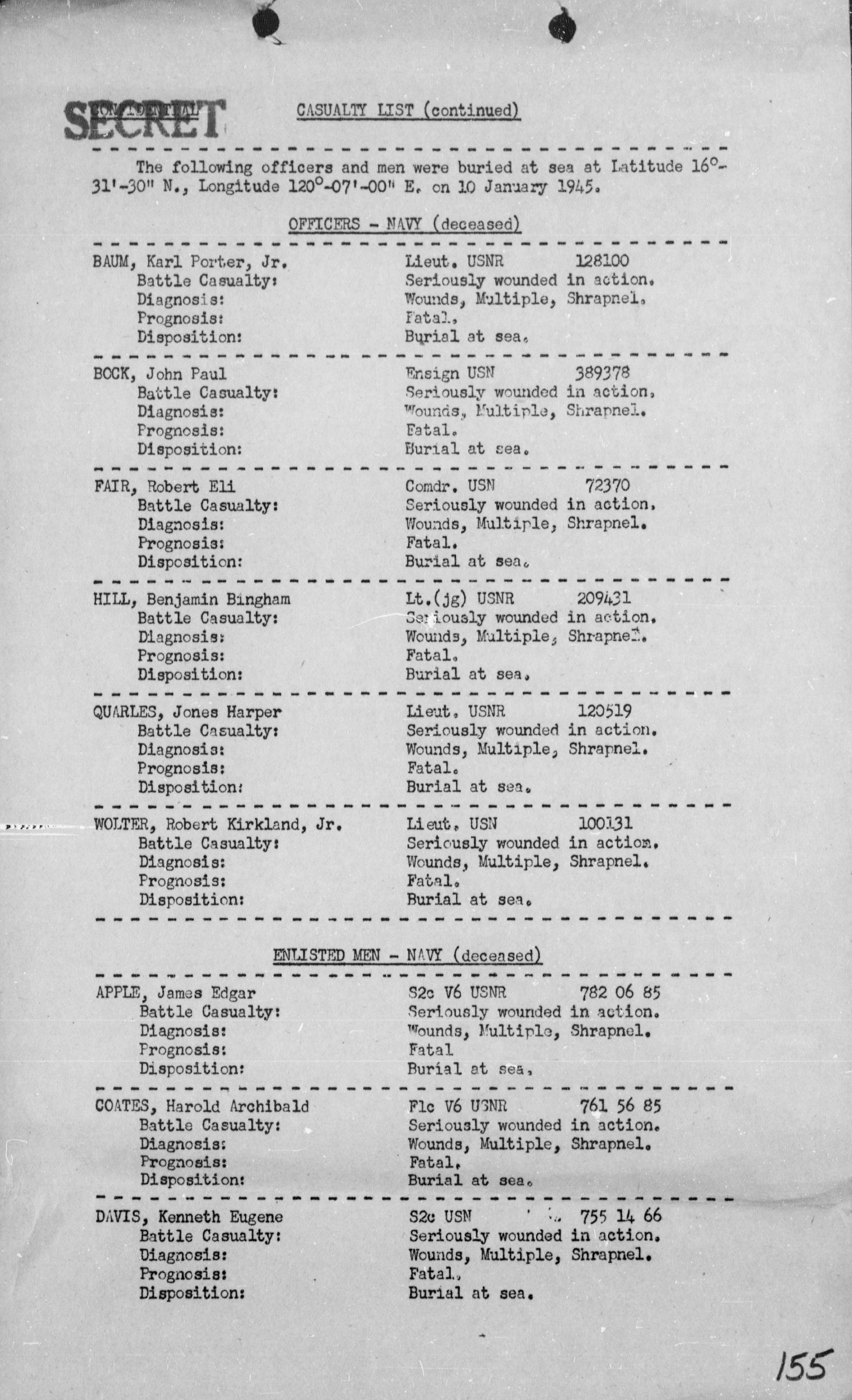 List of USS Colorado’s dead and MIA lists him: http://www.usscolorado.org/KIA_MIA.htm