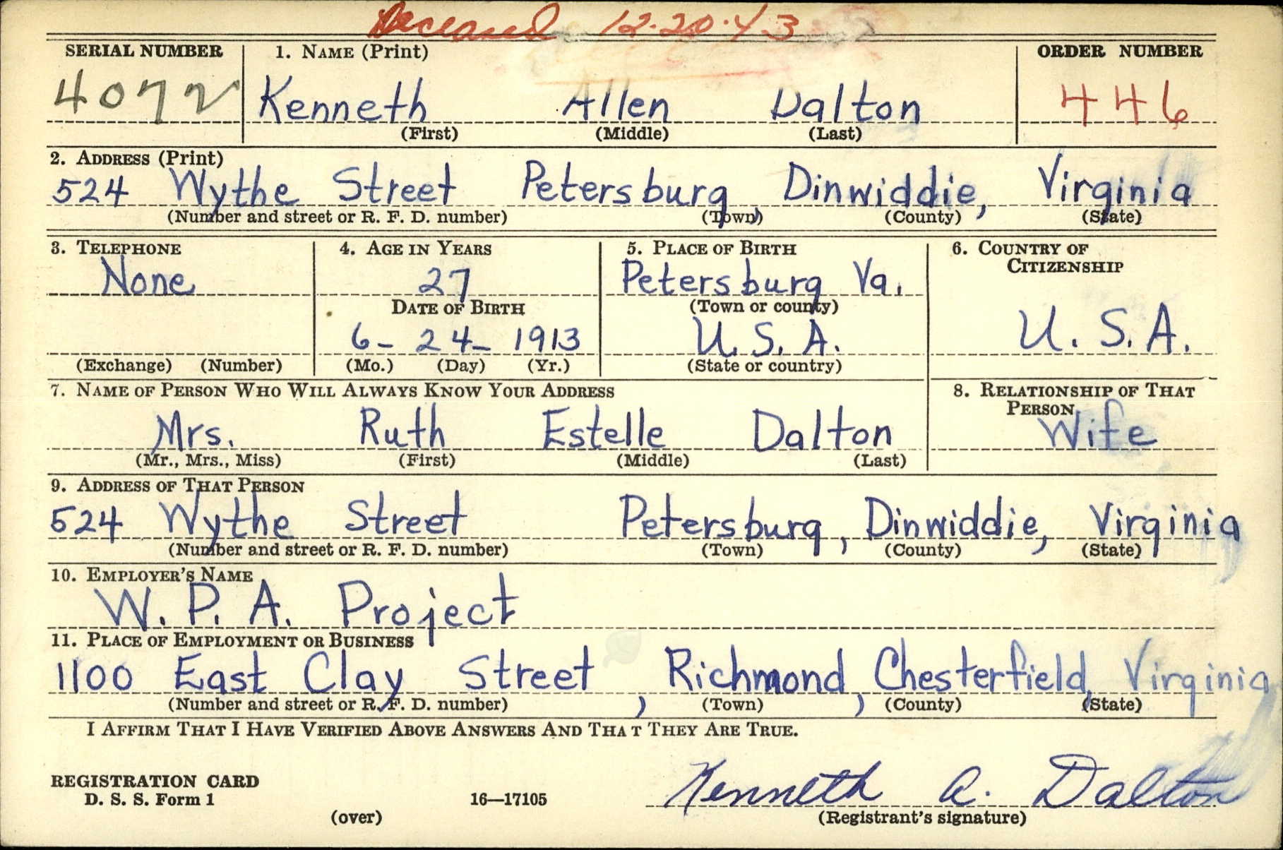 - Date of birth: 24 June 1913