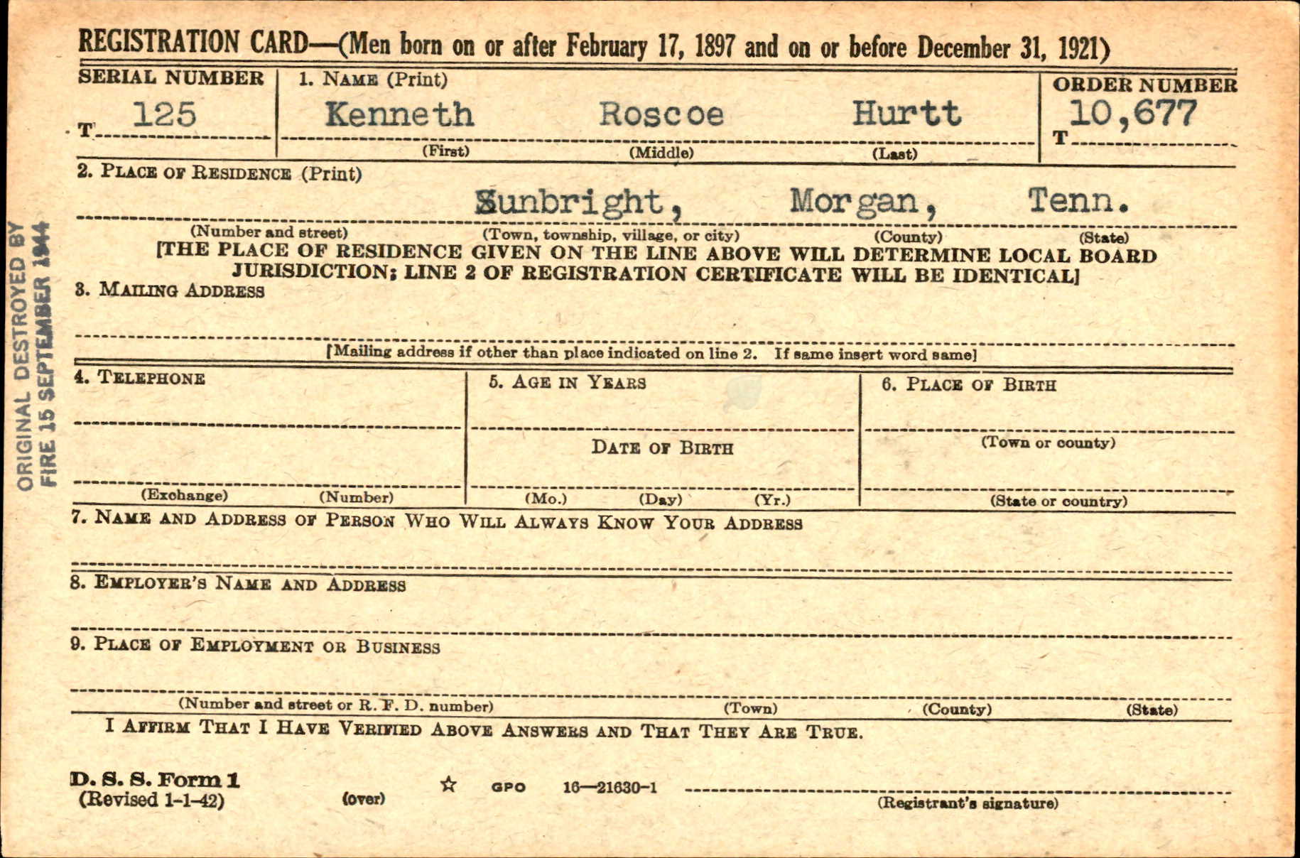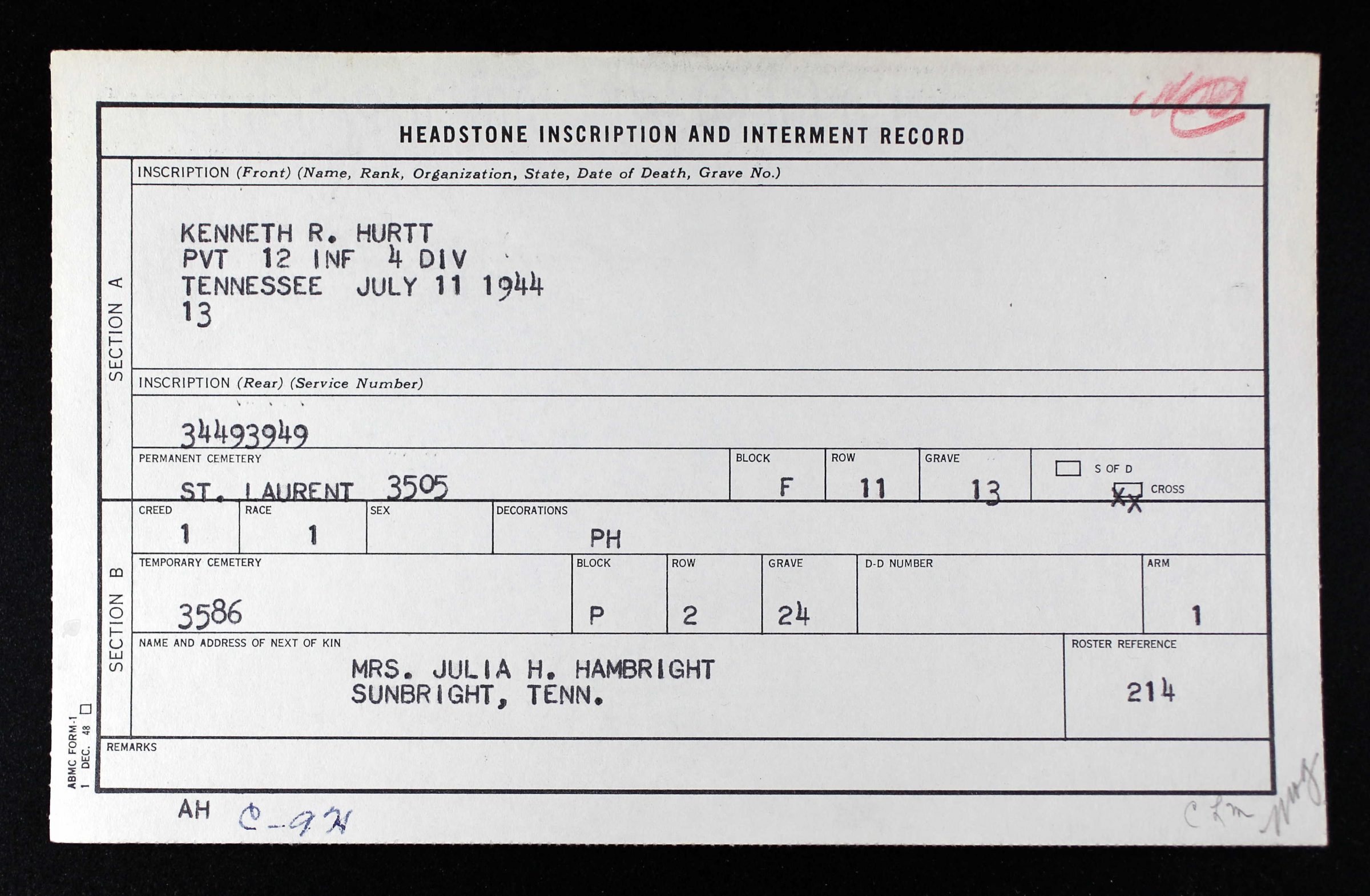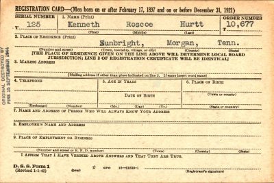 Kenneth Roscoe Hurtt was born in Tennessee in 1921, the son of Julia Dena Hurtt, and stepson of John Benjamin Hambright.