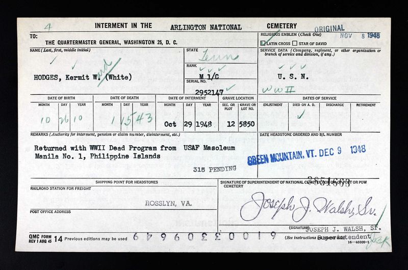 - Burial/Memorial Location: Arlington National Cemetery, Arlington, VA