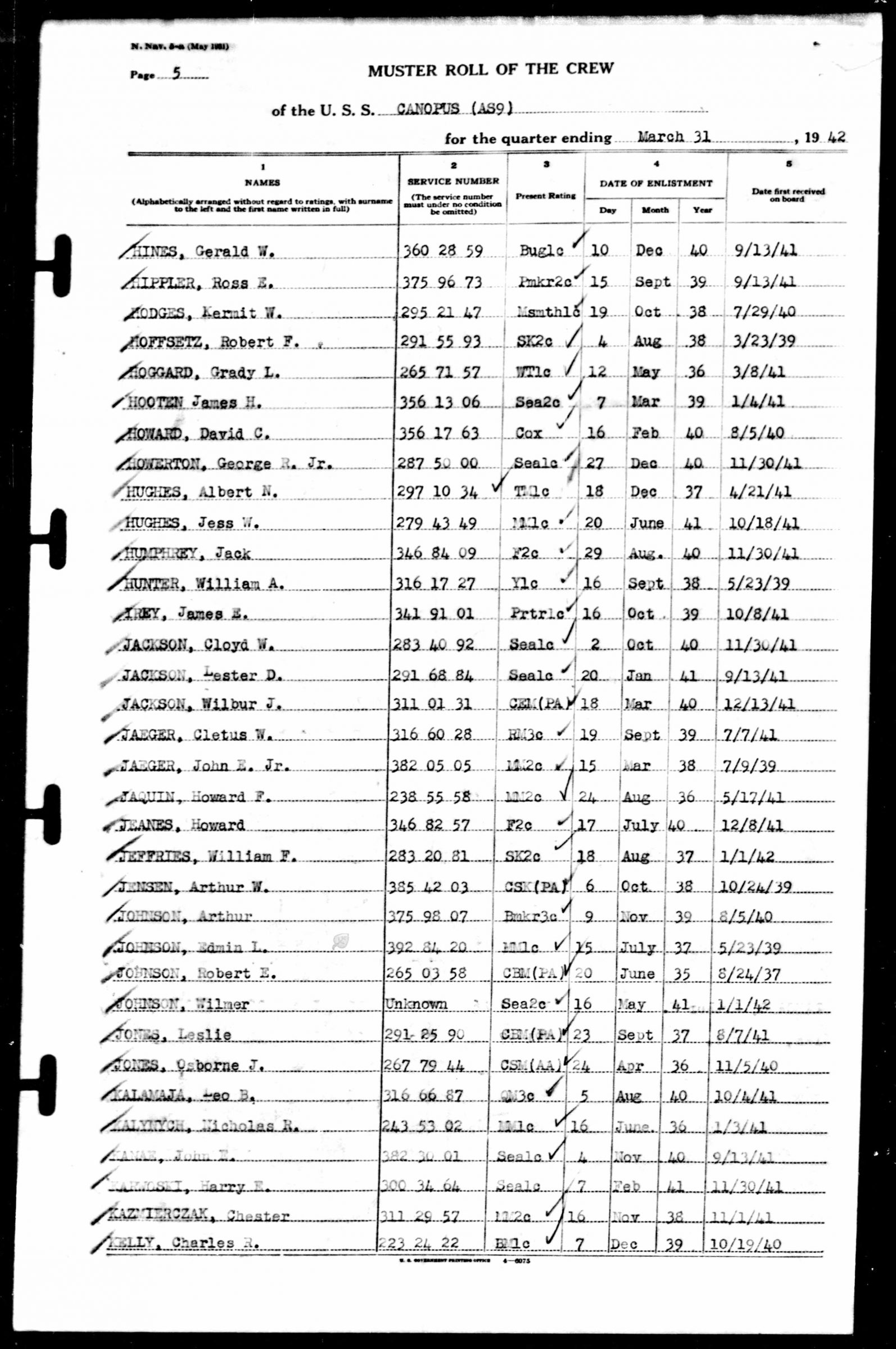 - Division/Assignment: U.S.S. Canopus (AS9)