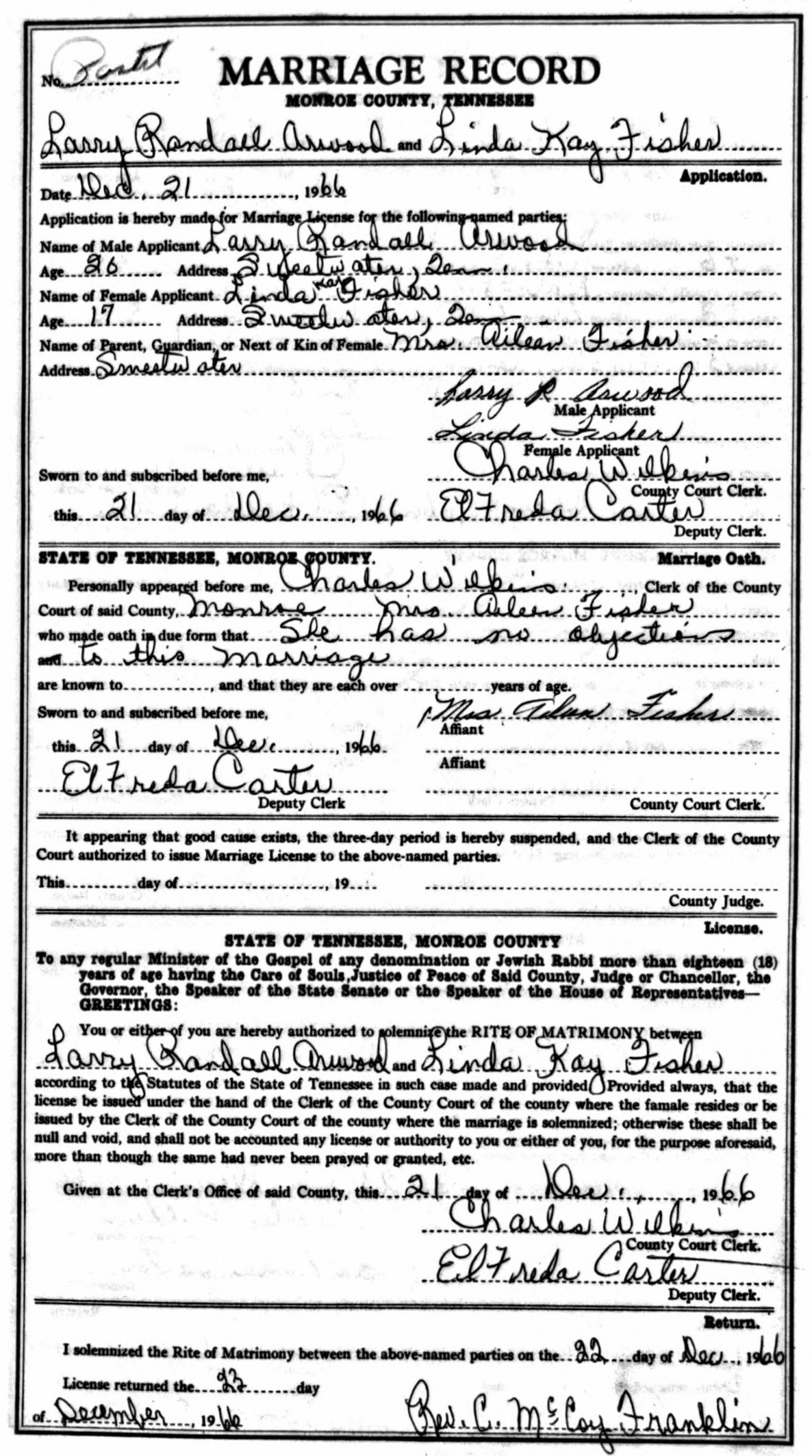 • Burial/Memorial Location: Sweetwater Valley Memorial Park, Sweetwater, Monroe County, TN