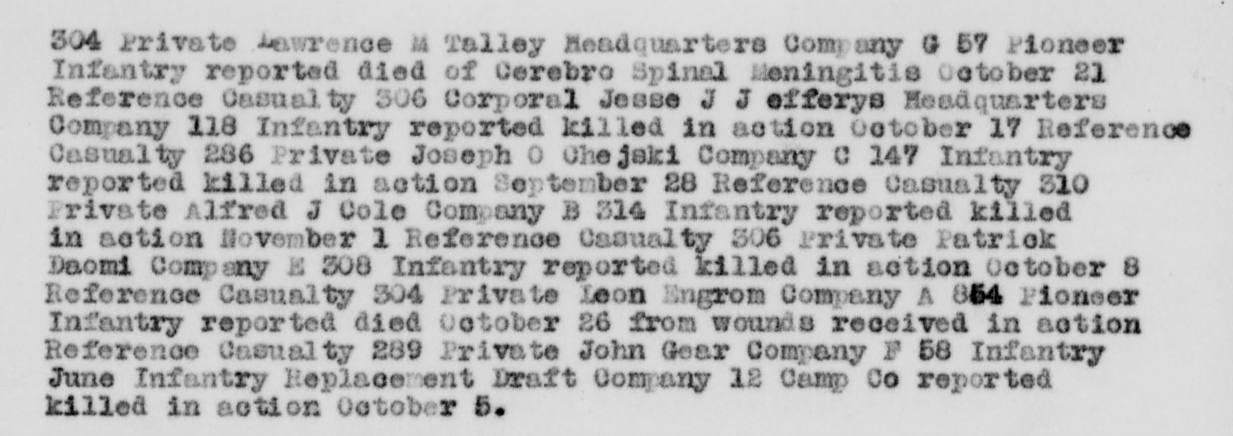- Division/Assignment: Headquarters Company, 57th Pioneer Infantry Regiment
