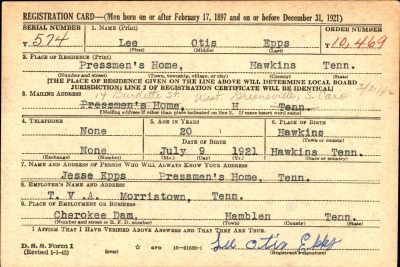 Lee Otis Epps was born 9 July 1921, the son of Jesse Harvey Epps and Flossie Mae Martin.
