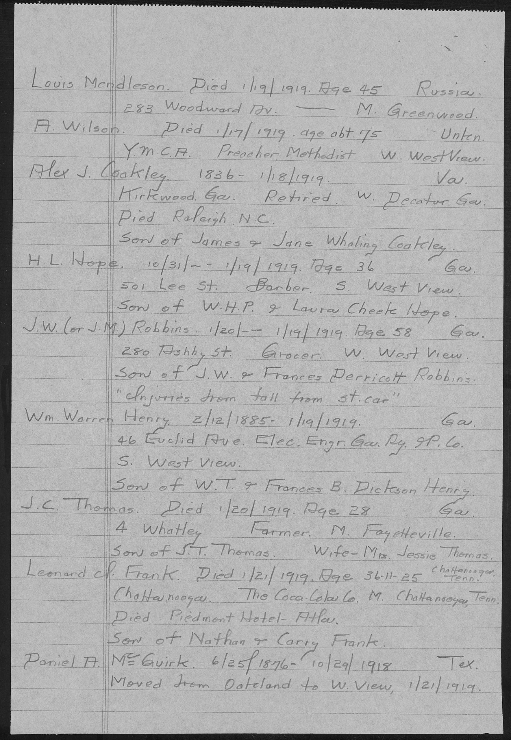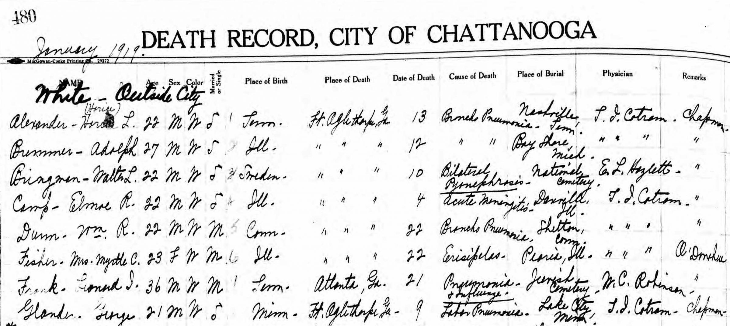 - Burial/Memorial Location: Mizpah Cemetery, Chattanooga, Hamilton County, TN