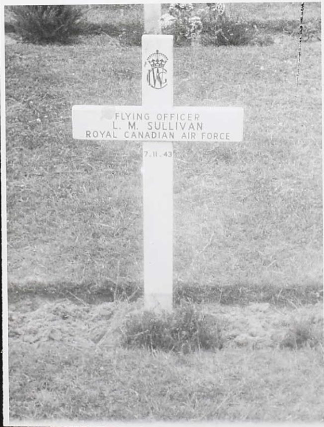 F/O Sullivan died in an air crash at the U.S.A.A.F. Station, Mantlesham Heath, Woodbridge, Suffolk, England on 7 November 1943. He is buried at Brookwood Military Cemetery, Grave 47.E.9., Surry, United Kingdom.