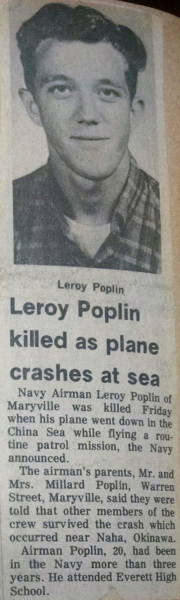 “…Sir, I am looking for people who would have served with my father, AO1 Leroy Poplin. He was killed 05 April 1968, while flying a patrol mission approx. 200 miles east of Okinawa. I believe he flew with Patrol Squadron SIX, and his home base was NAS Barbers Point, Hawaii. I know there were 2 to 3 survivors from the accident (the Navy states in all documentation I can find, that the P3 collided with the water, but could never determine why.) I never got to know my father, as I was a little more than 2 years old when he was killed (I am now 31 years old). I do not have much information on how to track down the survivors, or anyone one who would have served with my father. I would greatly appreciate any help you can provide me. Sincerely, rpoplin001@roadrunner.com Randy Poplin…”